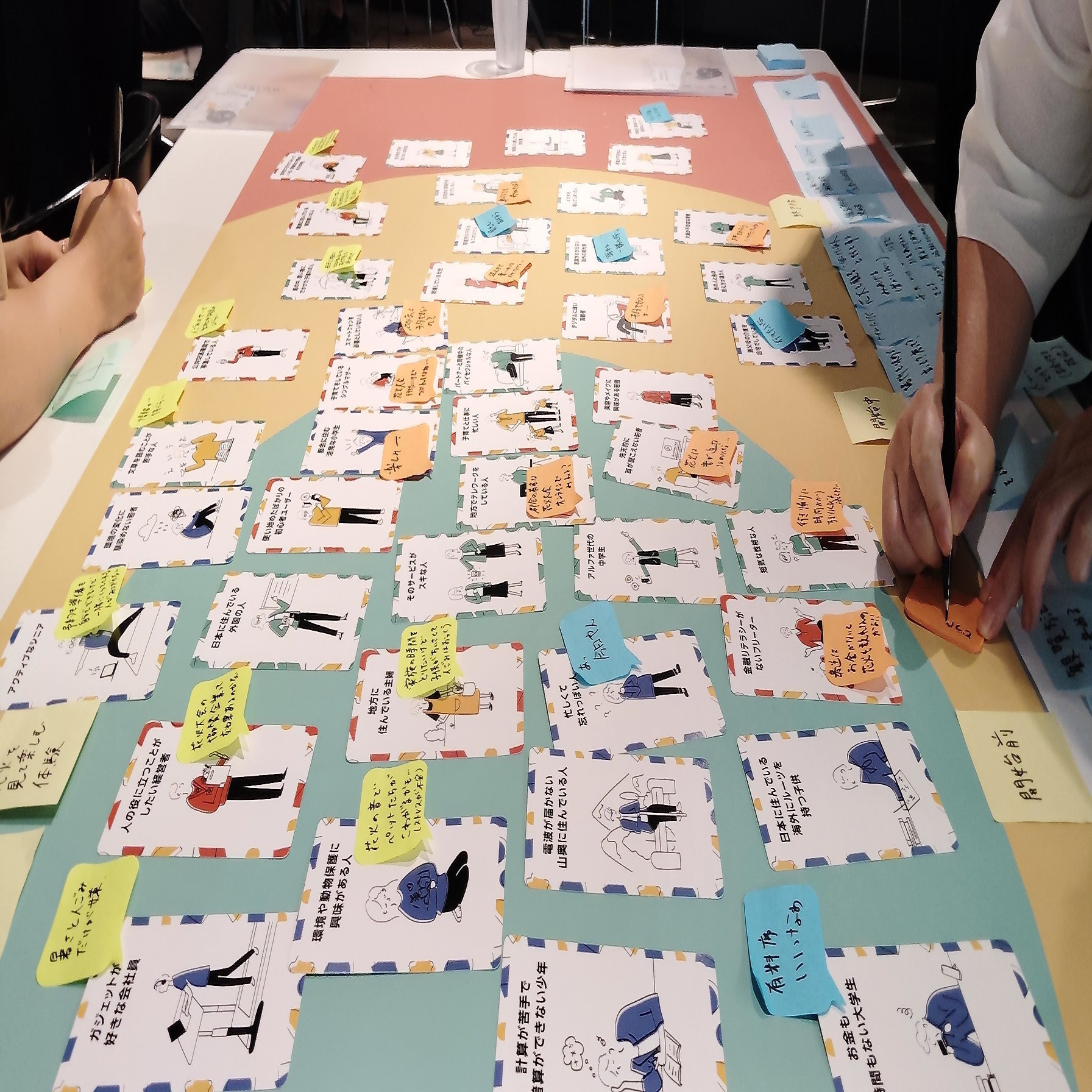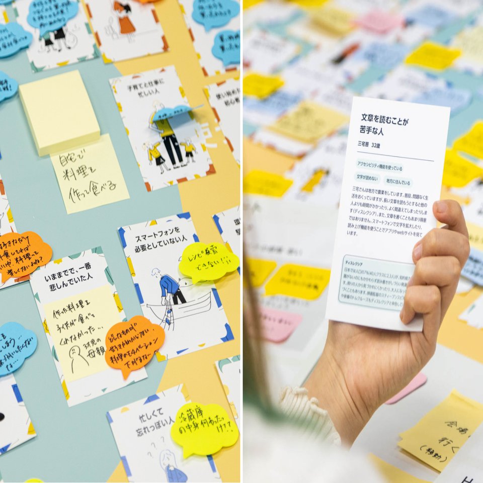 様々な背景を持つ人物像が描かれた「インクルーシブペルソナカード」を使用し、多様な視点でのペルソナとの関係性を整理しました。